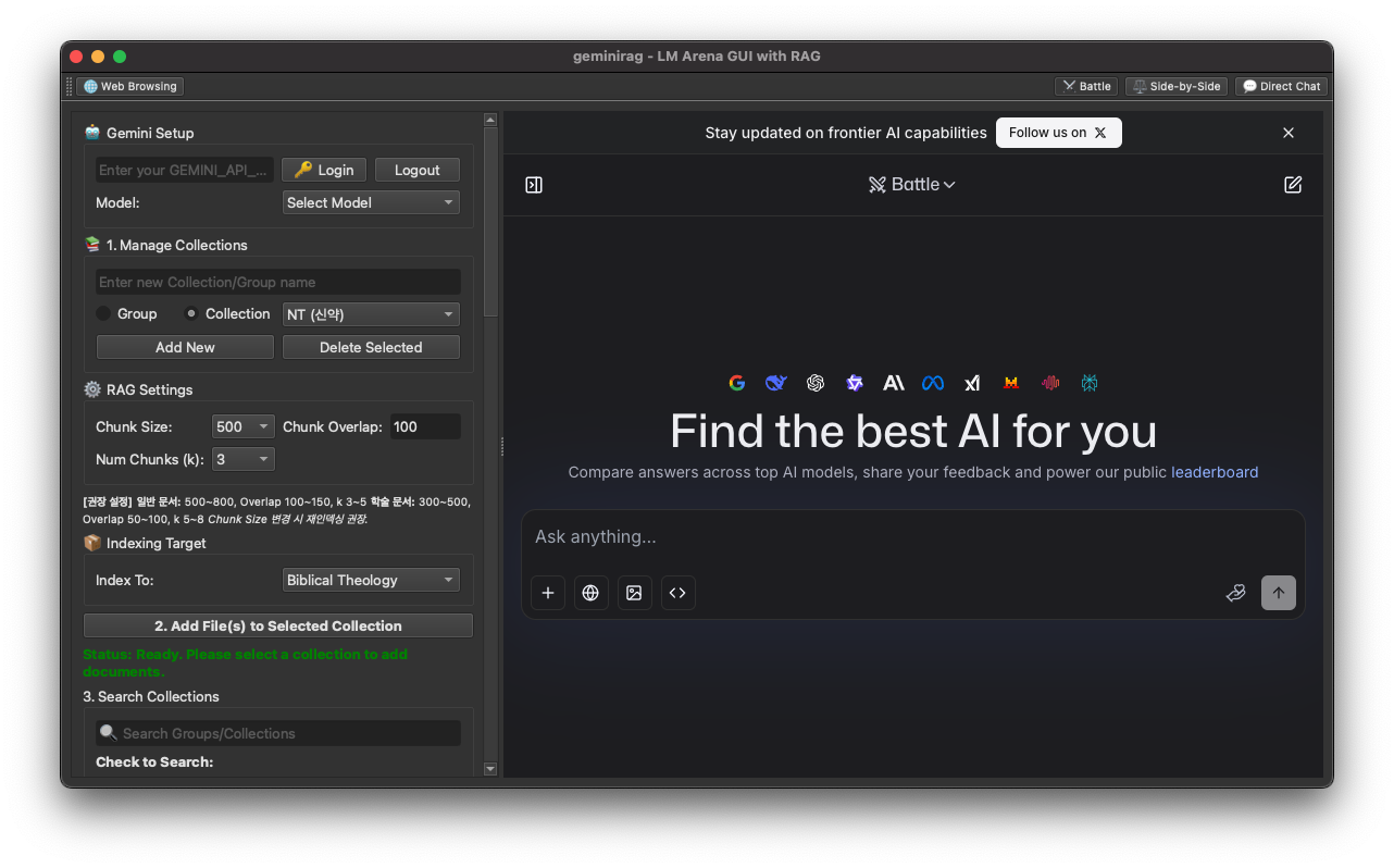 새로운 기능은 RAG(검색 증강 생성) 실행 시, 웹뷰를 거치지 않고 입력된 Gemini API 키를 사용하여 결과를 GUI에 직접 표시하고 기록하는 기능을 제공합니다.