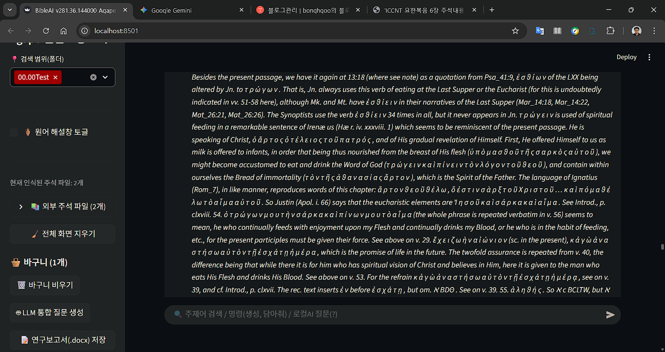 방대한 ICCNT 주석을 AI를 통해 핵심만 길어 올리고, 이를 다시 성도님들과 후학들을 위해 정리하는 과정은 '신학적 지식과 영성의 함양'에 가장 완벽한 도구.